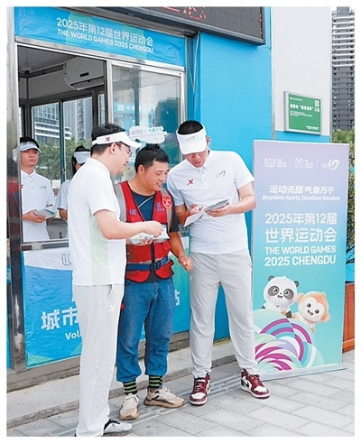 城市志愿者向市民介绍世运会赛事信息。 成都世运会执委会供图
